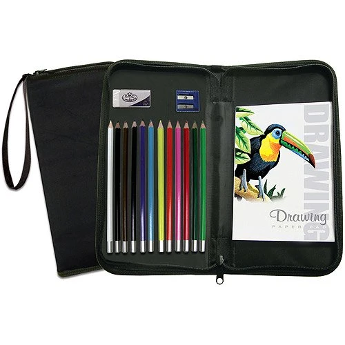Keep your art supplies safe and sound with this Royal Brush portable art set. This set includes 12 colored pencils, a drawing pad, an eraser and a sharpener housed in a 6″ x 10.75″ customized, zippered carrying case that protects supplies for storage and travel.