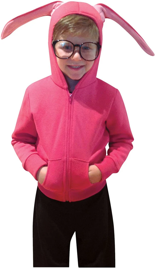 Ralphie may not have loved his bunny suit, but the rest of the world did! Give everyone a laugh in this Rasta Imposta bunny hoodie inspired from the timeless Christmas classic, A Christmas Story. Made from cotton and polyester, this soft pink hoodie features a front zipper and floppy pink ears on the hood. This funny hoodie is great for Christmas themed parties and other holiday events. Small