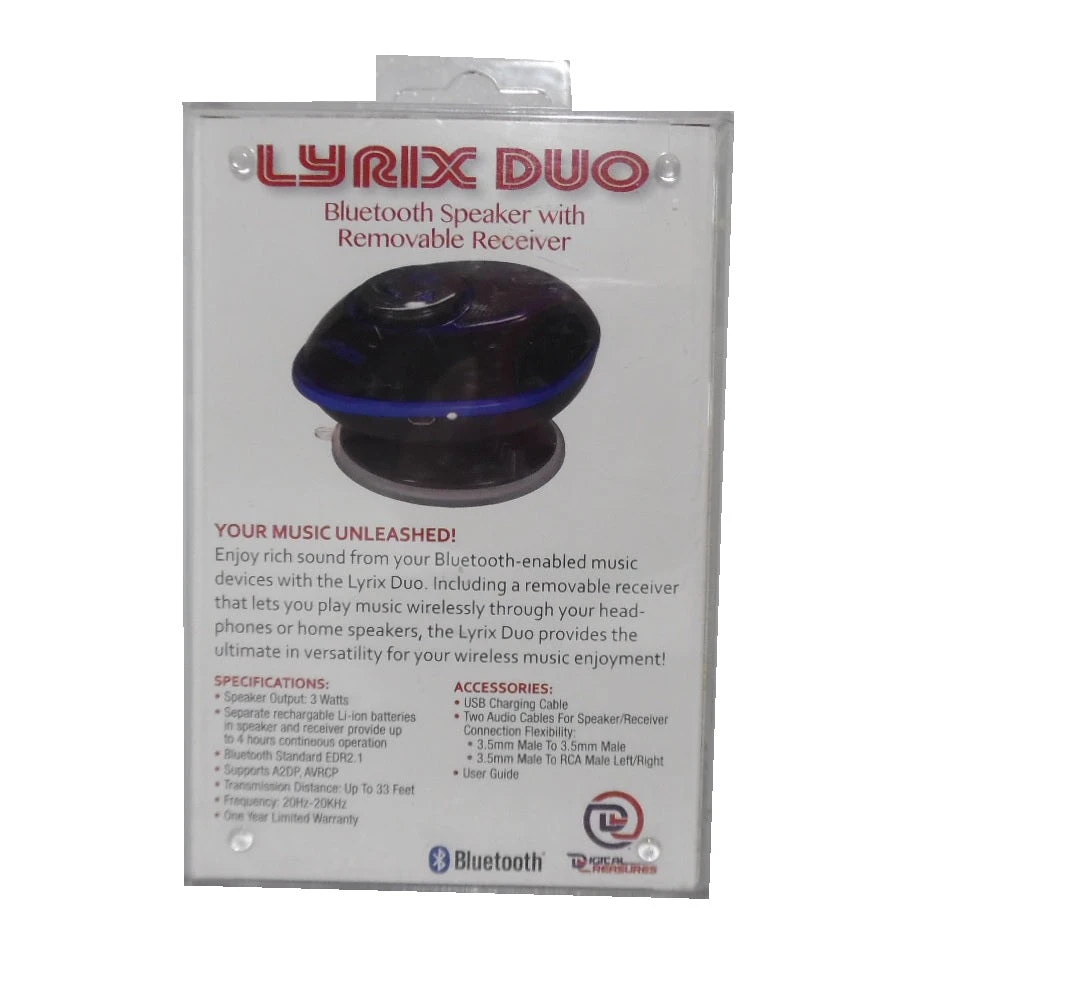 Enjoy richly immersive sound from all of your Bluetooth-enabled music devices with the Lyrix Duo. Including a removable receiver that lets you enjoy your music wirelessly through your headphones or home speakers, the Lyrix Duo provides the ultimate in versatility for your wireless musical enjoyment.