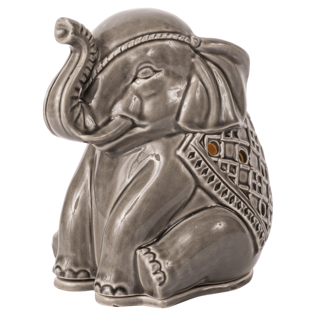 The Better Homes & Gardens Elephant Full-Size Scented Wax Warmer combines light, fragrance and artistic design to create a unique, personalized ambiance in any room. This item is in the shape of an elephant and presented in neutral hues making it easy to match with a majority of decor. The detailed elephant wax warmer uses a 25-watt light bulb to melt scented wax to diffuse wax melt scents into the air. The use of an electric light makes this a safe way to heat your fragrance. The gentle light also adds a touch of ambiance. This Better Homes and Gardens wax warmer is crafted with style and functionality in mind, making it a good choice for home decorating. (Wax Melts Sold Separately)Â 6 x 6 x 7