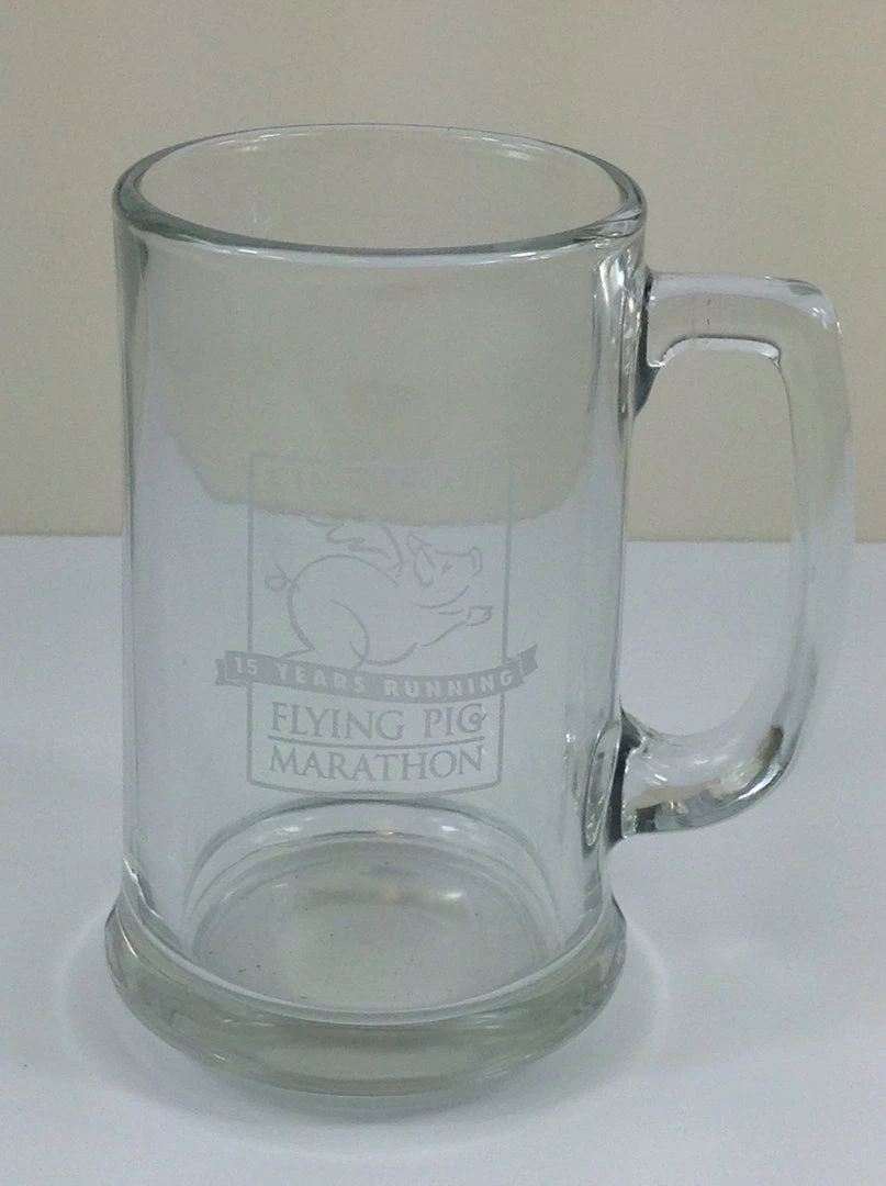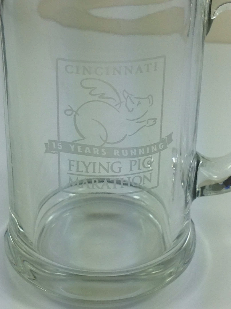 Honor an annual tradition in Cincinnati Ohio with the Fifteen Anniversary mug of the Cincinnati Flying Pig marathon. 14 ounces.
