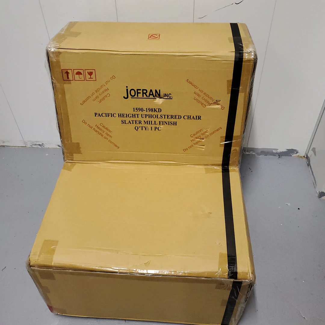The relaxed vintage styling of the Jofran Pacific Heights Upholstered Dining Side Chair is wonderful for any table setting from the traditional to the modern. It features exposed wood legs in your choice of finish, a generously padded seat, and its high back and arms seem to hold you in a comforting embrace. The seat, back, and arms are all nicely cushioned and upholstered in beige cotton linen with dark nail head trim tracing the outer edge in a way that really catches the eye, inviting guests in for a relaxing sit-down. Some assembly is required. 1590-198KD