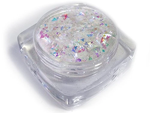 Create a frosty, frozen femme… chill a cheekbone, shiver a shoulder… add an avalanche of accents in minutes! Highly-reflective micro glitter and iridescent flake mix is used to boost reflection of Ice FX or as an individual accent on skin, hair, apparel and for glamour. May be adhered with Ice Gel or with pump adhesive or hair spray. Dust, shake, brush and paint on.
