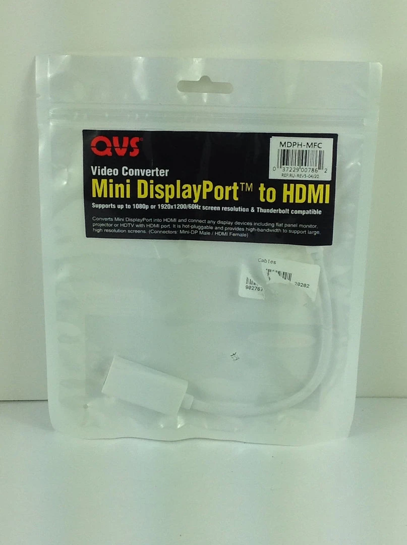 Converts Mini DisplayPort into HDMI and and connect any display devices including flat panel monitor, projector or HDTV with HDMI port. It is hot-pluggable and provides high-bandwidth to support large high resolution screens.