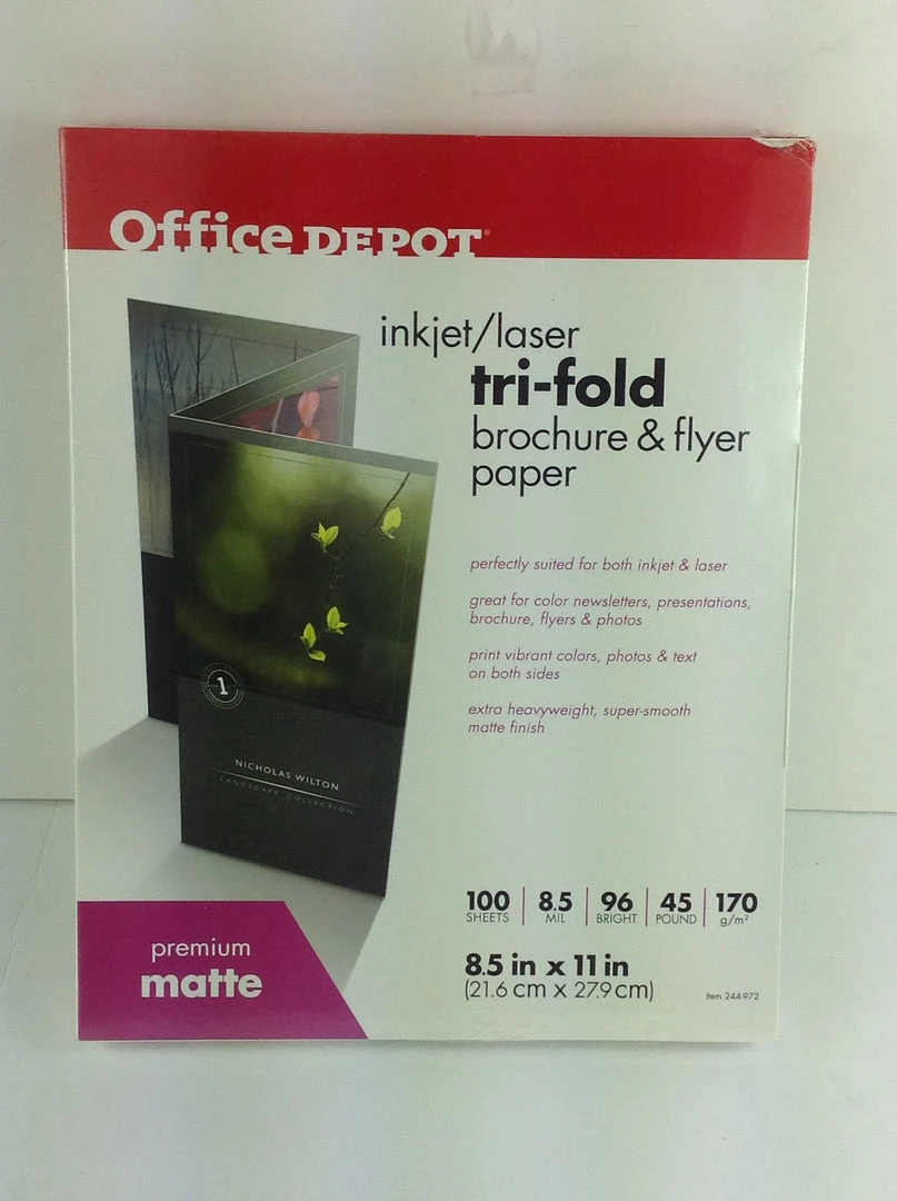 - Matte, tri-fold paper in a pack of 100 sheets to keep your office stocked.