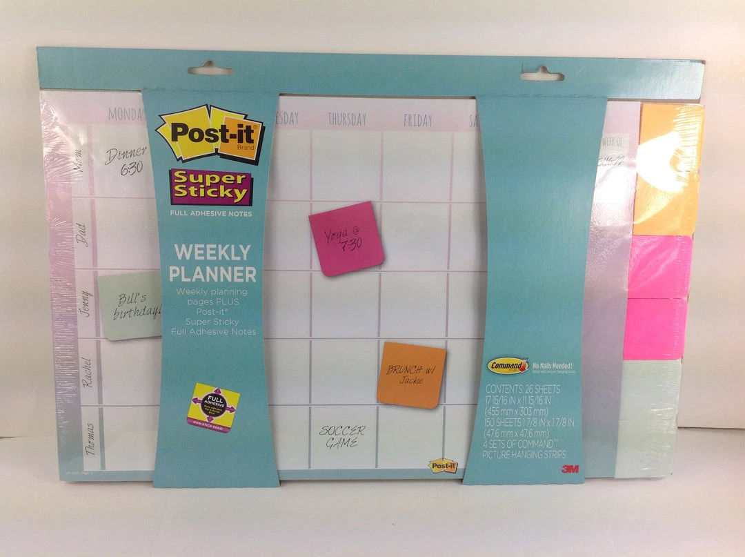 Post it Weekly Planner in 20 in x 13 in size is a great tool to get organized and keep your daily life in line. Large calendar features fun blue and green gradient design with spaces for each day of the month or week.