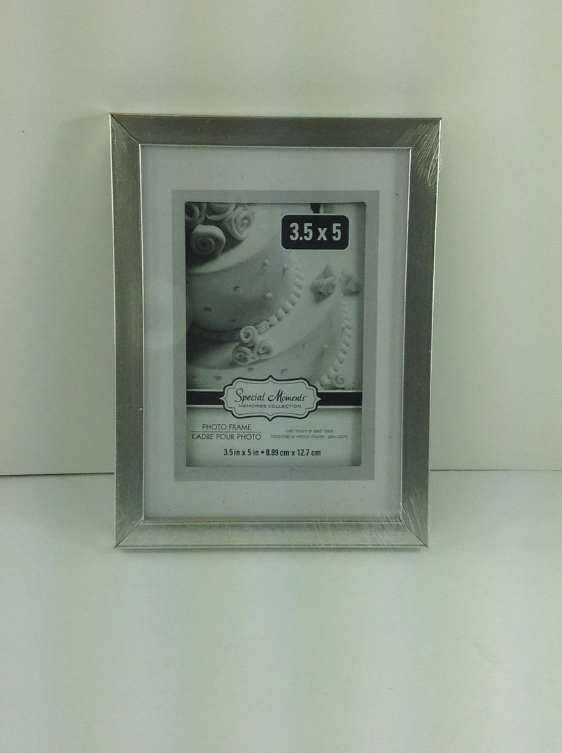 Special moments picture frame for wall mount or easel back horizontal or vertical display with glass pane. 3.5″ x 5″ Silver