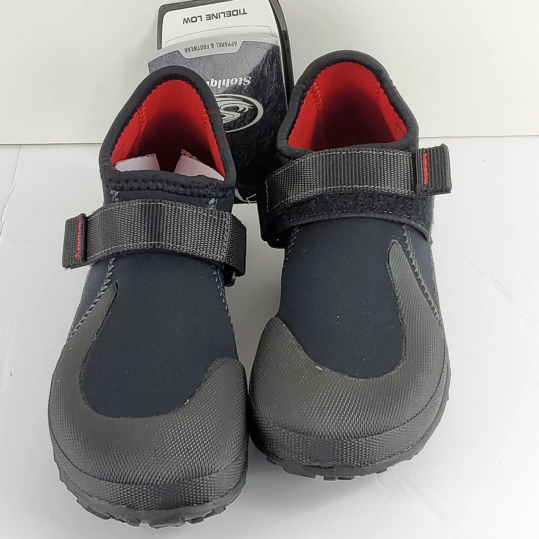 The low-top bootie features a 3mm neoprene upper, 5mm neoprene insole, and hook and loop strap to keep them locked on when swimming. The thick rubber outsole features a proprietary Stohlquist tread pattern for outstanding traction. The ergonomically shaped footbed allows for maximum comfort and warmth. Vulcanized rubber outsole.