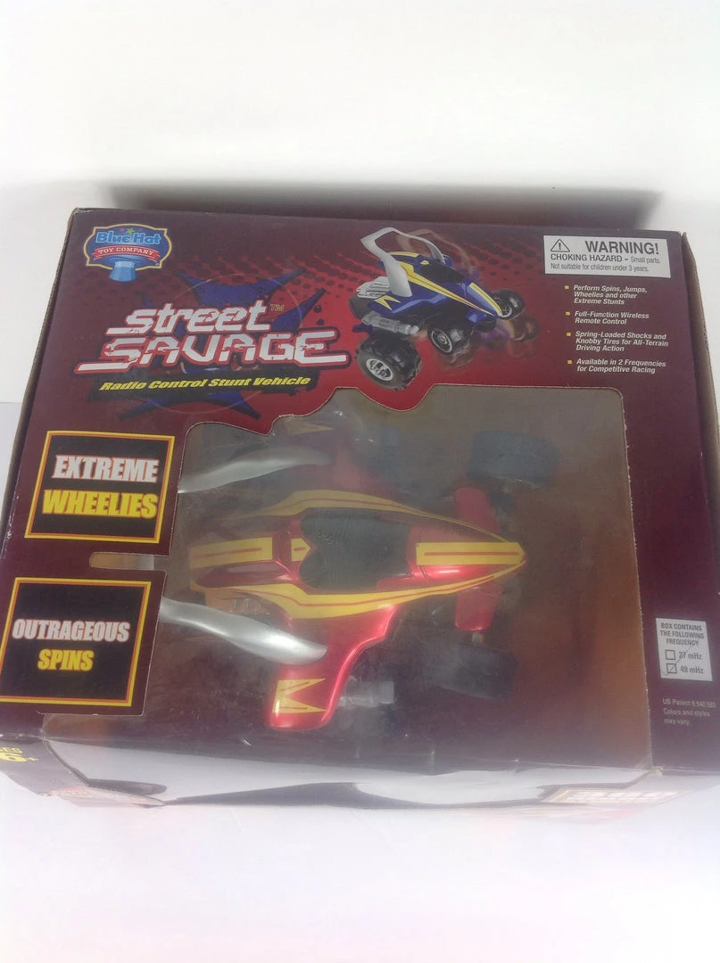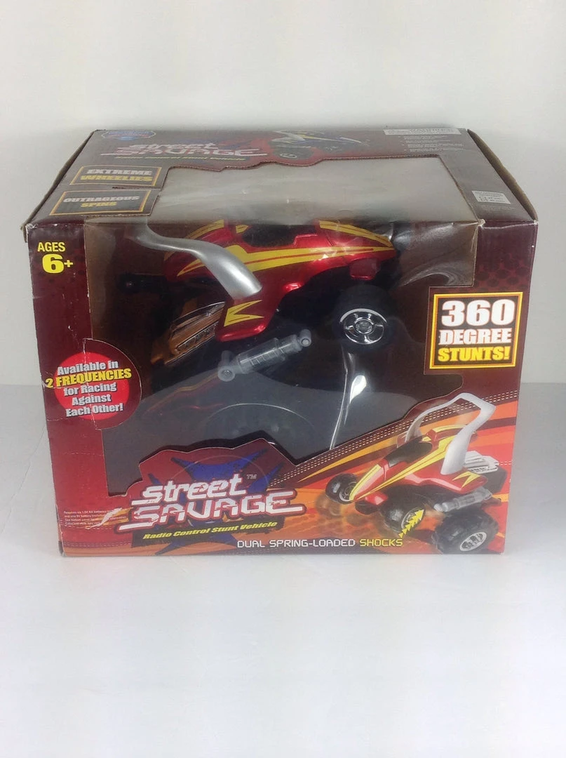 Fuel Your Child’s Need For Speed! Fasten your seatbelts and put the pedal to the metal with the Sharper Image RC Street Savage Stunt Car! This small yet mighty remote-control toy car features all the coolest tricks that’s sure to leave children breathless! Action Packed Features That’ll Wow The Crowd! Perform 360-degree spins, wild wheelies, sharp corner turns, and much more with the Street Savage’s spring-loaded shocks while the knobby tires grip onto all sorts of terrain for easier driving/navigation. A full function wireless remote control offers a multi-directional operation complete with two types of radio frequencies for competitive racing with another friend’s RC vehicle. Quality You Trust The Sharper Image RC Street Savage Stunt Car is one remote control toy built for speed, durability, and high performance in a compact design! It’s the perfect gift for that special someone in your life and delivers long-lasting top notch results to boot.
