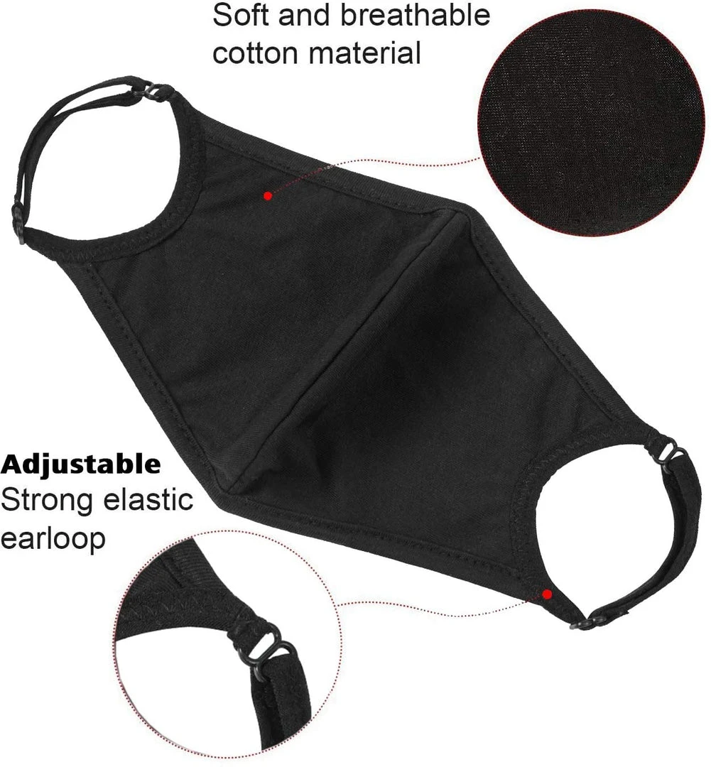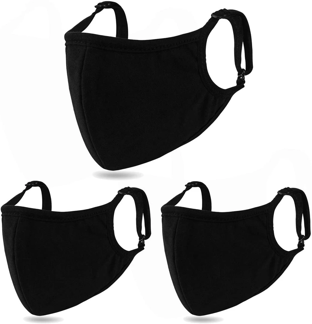 100% Cotton Unisex face mask with nose bridge wire. Adjustable straps loops. 3 pcs Black with white interior.